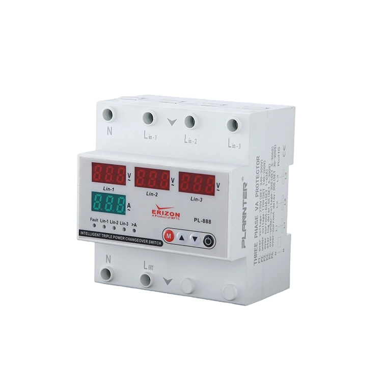این محافظ ولتاژ 3 فاز چهار نمایشگر دارای ولتاژ بیش از حد، ولتاژ پایین و جریان بیش از حد است. استفاده از یک تراشه اندازه گیری ویژه تضمین می کند که خطای اندازه گیری پارامترهای الکتریکی مانند توان و مصرف انرژی در محدوده 1 ±٪ باشد. این دستگاه مجهز به نمایشگر LCD با دو صفحه نمایش برای نظارت در زمان واقعی، مقادیر جریان و ولتاژ است. و همچنین میتواند آستانه اضافه ولتاژ/کم ولتاژ، مقدار جریان اضافه و زمان تأخیر عمل را برای برآوردن نیازهای برنامه در سناریوهای مختلف سفارشی کند.